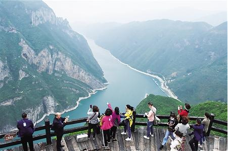 游客在神女景区俯瞰秀丽巫峡 通讯员 王忠虎 摄