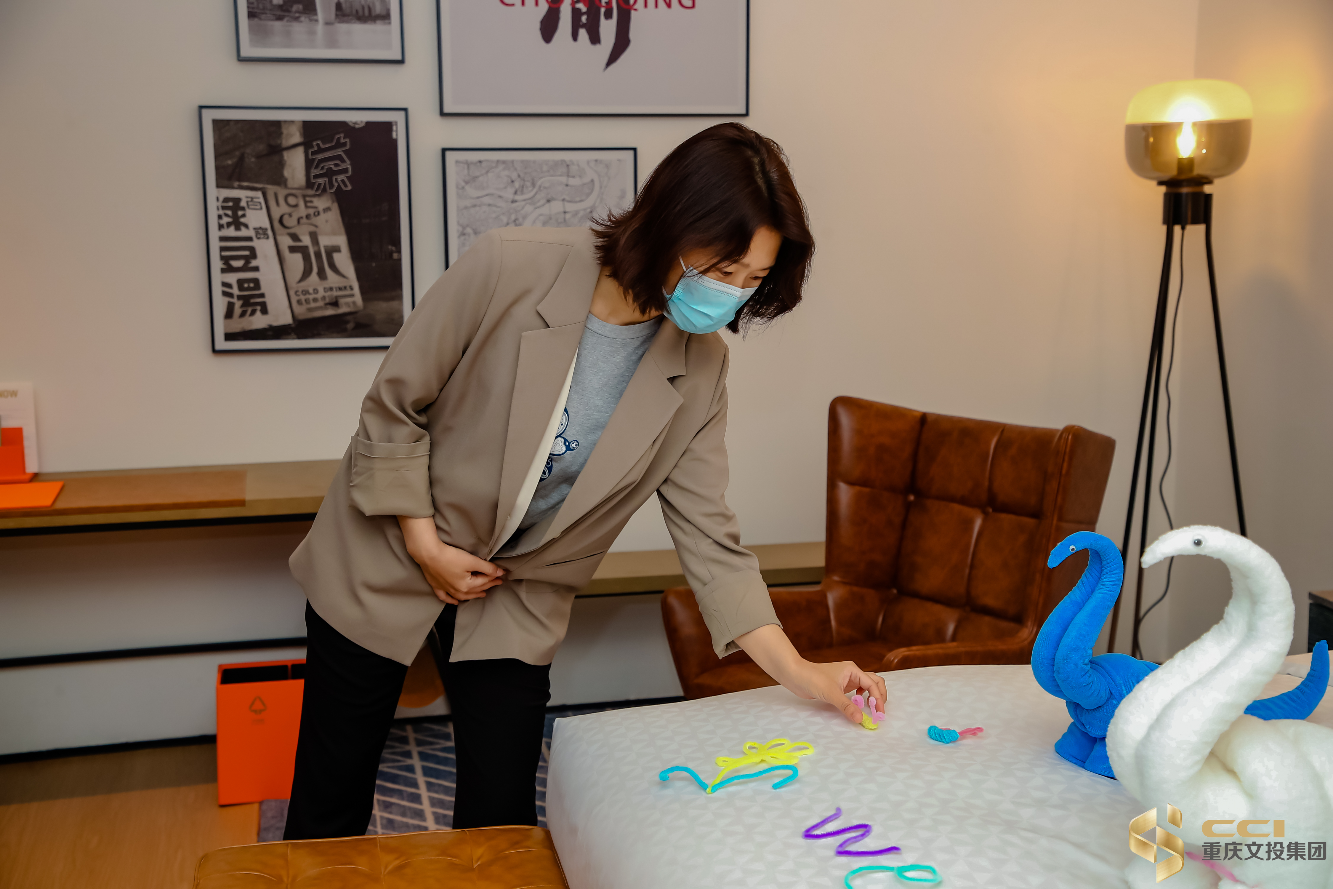 “永川里”福朋喜来登酒店亲子房有专门的儿童卡通水龙头、小朋友的座椅和帐篷,套房有太空舱按摩椅和用毛巾折出的欢迎布偶“永川龙”,都让人眼前一亮。集团行政办曾婷婷在参观时,看到细节设计拉满的亲子房,就表达了要带孩子来永川游玩的愿望。文里苗品茶艺术酒店总经理刘晓妮参观完万豪双品牌酒店后表示,双品牌酒店从规划设计到选材用材都很考究,两家酒店各有风格,却都有高水平的服务标准,“他们从大堂的灯光设计到客房的选画挂画都一丝不苟,做到了与重庆、永川在地文化元素的结合,极致的服务给人的感觉非常温馨,这些细节都值得我们团队对标认真学习。”
