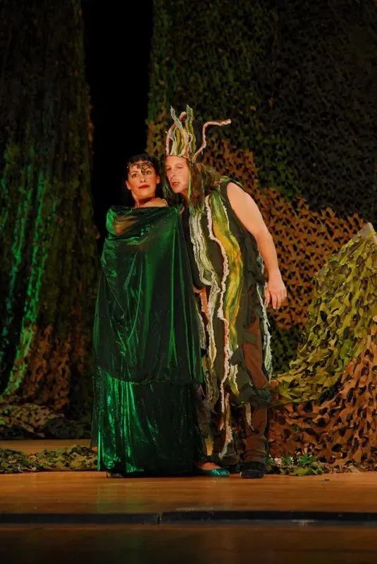 在林中,仙王与仙后反目,仙王为了报复让小精灵取来相思花把花汁滴在仙后的眼中,让她一睁眼就会爱上她第一眼看到的东西。