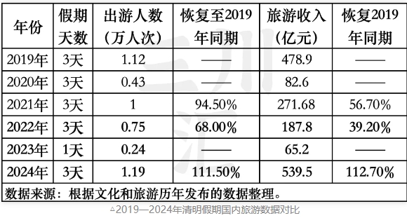随着2024年清明节假期的圆满落幕,国内旅游市场再次展现出蓬勃生机。文旅部数据中心发布的数据显示,清明假期期间,全国国内旅游出游人次达到1.19亿,与2019年同期相比增长11.5%。与此同时,游客的消费能力也同步提升,国内游客出游花费总额高达539.5亿元,较2019年同期增长12.7%。